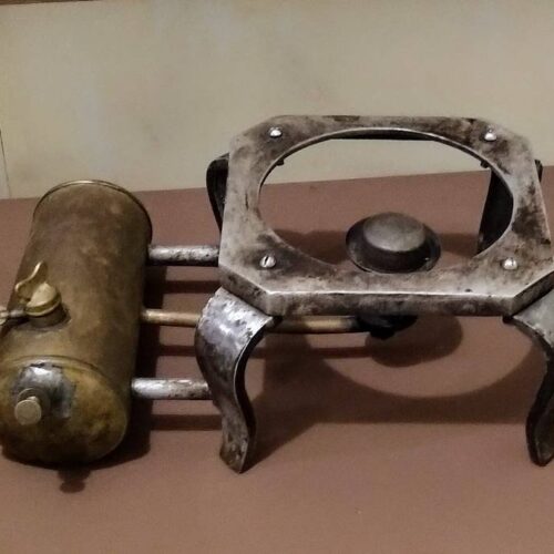 Διαβάστε περισσότεραΓκαζιέρα Το μαγείρεμα γινόταν με γκαζιέρες που έκαιγαν πετρέλαιο ή βενζίνη (σπανιότερα). Ήταν πολύπλοκα εργαλεία που οι νοικοκυρές ήταν απόλυτα εξοικειωμένες μαζί τους. Τρομπάριζαν αέρα μέσα στο δοχείο του καυσίμου, ώστε αυτό να ανεβαίνει στον καυστήρα. Συχνά βούλωναν και υπήρχαν ειδικά βελονάκια για το ξεβούλωμά τους. Τέτοια γκαζιέρα χρησιμοποιούσαν οι δάσκαλοι για την παρασκευή φαγητού.View product -