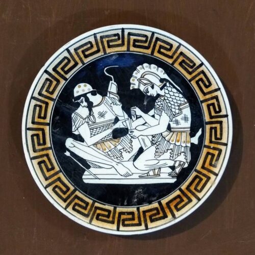 Διαβάστε περισσότεραΚεραμικό πιάτο, ελληνικής κατασκευής, απεικονίζει τον Αχιλλέα να δένει το τραύμα του Πάτροκλου. Μας το δώρισε ο Χαβέλας Σπύρος.View product -