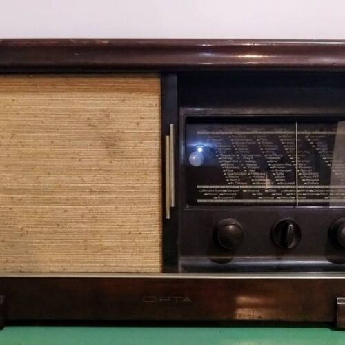 Διαβάστε περισσότεραradio Εργοστάσιο –Τύπος: Loewe – Opta Χώρα κατασκευής: Γερμανία 1938/1939 Διάθεση από: Στρινγκάρη Κωνσταντίνο Περιγραφή: Το ραδιόφωνο είναι η συσκευή που λειτουργεί ως δέκτης ηλεκτρομαγνητικών εκπομπών σε ορισμένη συχνότητα με μια κεραία και μετατροπέας σε ήχο.View product -