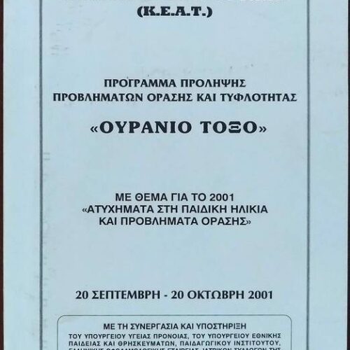 Διαβάστε περισσότεραΠρόγραμμα πρόληψης προβλημάτων όρασης και τυφλότητας Κ.Ε.Α.Τ 20 Σεπτέμβρη - 20 Οκτώβρη 2001View product -