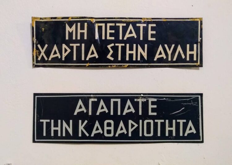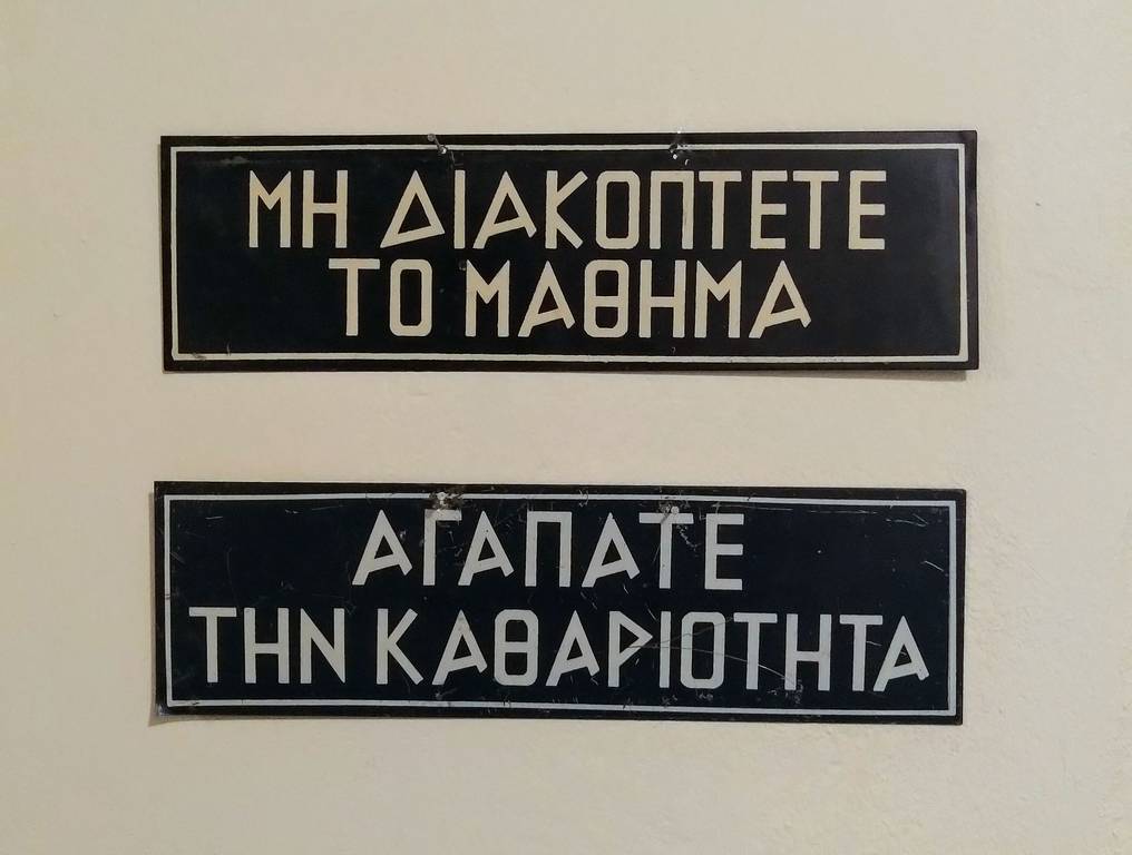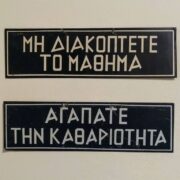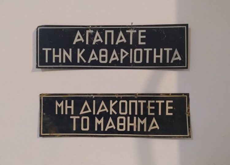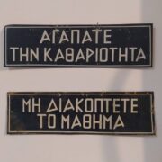 Κατηγορία: Έπιπλα Διδακτικές επιγραφές Μεταλλικές επιγραφές με συστάσεις για καλή συμπεριφορά από το 1ο Δημοτικό Σχολείο Αγίου Δημητρίου. Σχετικά προϊόντα Γραφείο Τάξης Διαβάστε περισσότερα Δωρεά Δήμος Αγίου Δημητρίου View product Ο Δεκάλογος του Μαθητού Διαβάστε περισσότερα Κατάλογοι με κανόνες σωστής συμπεριφοράς σε έντυπη και χειρόγραφη εκδοχή. Διακοσμούσαν τις τάξεις των Σχολείων της παλιάς εποχής. Οι δεκάλογοι που έχουμε στο Μουσείο προέρχονται από το 1ο Δημοτικό Σχολείο Αγίου Δημητρίου. View product Τραπεζάκι φροντιστηρίου Διαβάστε περισσότερα Τραπεζάκι από φροντιστήριο Αγγλικών. Μας τη δώρισε η Βικτώρια Χαραλαμποπούλου. View product