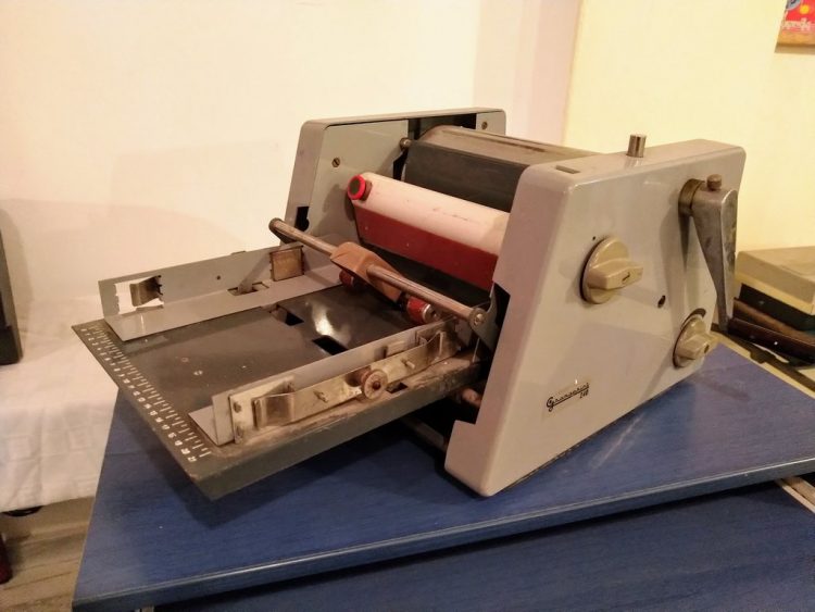 Περιγραφή: Μηχάνημα, που χρησιμοποιούσαν στο παρελθόν για την εκτύπωση εγκυκλίων, εργασιών σε περιορισμένο αριθμό αντιτύπων.