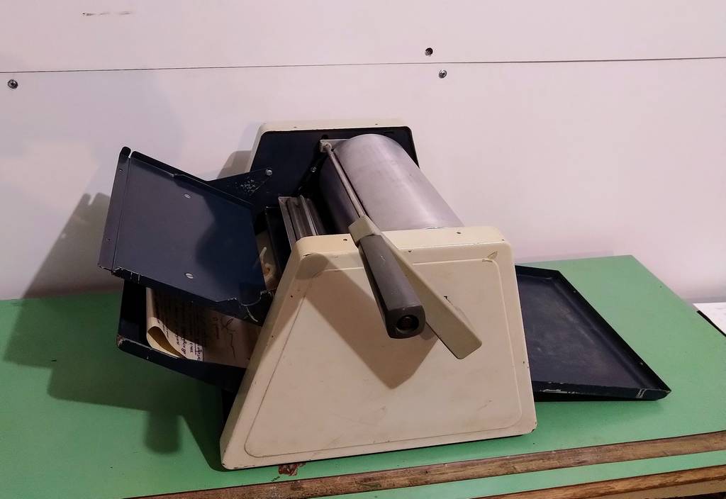 Περιγραφή: Μηχάνημα, που χρησιμοποιούσαν στο παρελθόν για την εκτύπωση εγκυκλίων, εργασιών σε περιορισμένο αριθμό αντιτύπων.