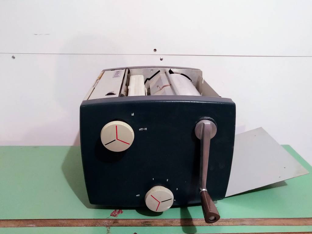 Διαβάστε περισσότεραΕργοστάσιο –Τύπος: Gestetner 460s Χώρα κατασκευής: Αγγλία Διάθεση από: 4ο Γυμνάσιο. Σχολείο Αγίου Δημητρίου Περιγραφή: Μηχάνημα, που χρησιμοποιούσαν στο παρελθόν για την εκτύπωση εγκυκλίων, εργασιών σε περιορισμένο αριθμό αντιτύπων. Μπορείτε να δείτε πως λειτουργεί εδώ.View product