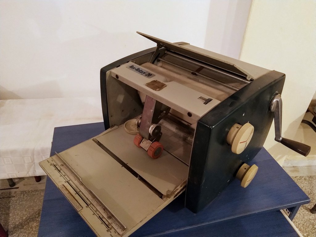Περιγραφή: Μηχάνημα, που χρησιμοποιούσαν στο παρελθόν για την εκτύπωση εγκυκλίων, εργασιών σε περιορισμένο αριθμό αντιτύπων.