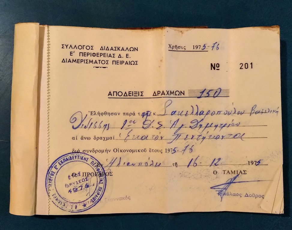 • 11 Βιβλιαράκια είσπραξης συνδρομών από 16-12-1975 μέχρι το 1979.