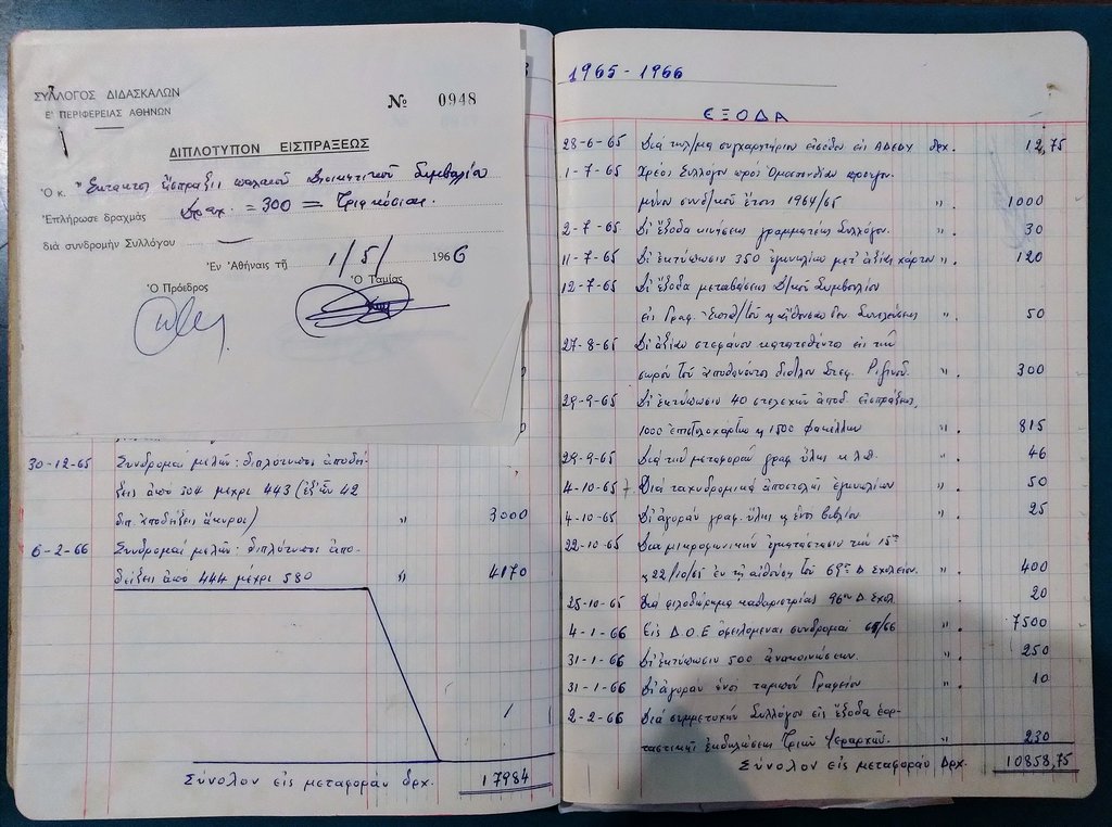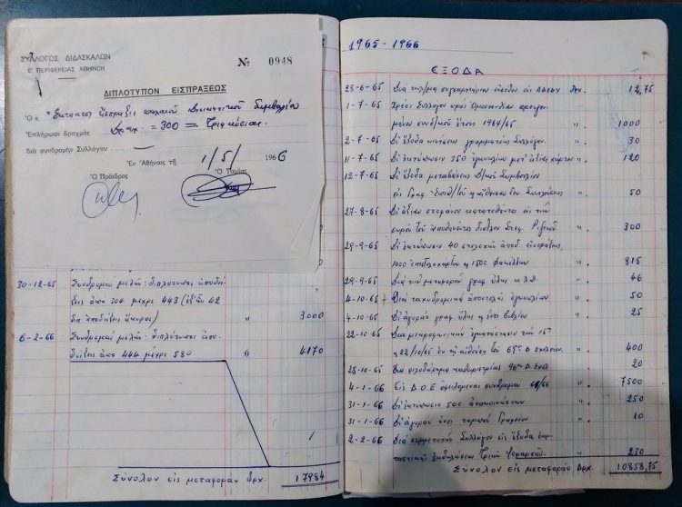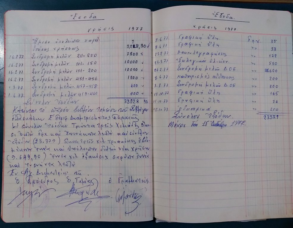 • 1 Βιβλίο Ταμείου χρήσης από τη συνδικαλιστική χρονιά 1963-64 μέχρι το 1977.