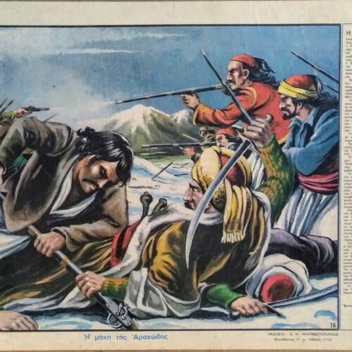 Διαβάστε περισσότεραΗ ΚΑΤΑΣΤΡΟΦΗ του Μεσολογγίου είχε και πολιτικάς συνεπείας ή σπουδαιοτέρα έκ των οποίων ήτο η υπογραφή του πρωτοκόλλου της Πετρουπόλεως. Το πρωτόκολλον υπέγραψαν, η Ρωσία και η Αγγλία, αι οποίαι ανελάμβανον από κοινού την υποχρέωσιν, να ασκήσουν πίεσιν επί της Υψηλής Πύλης, πρός τον σκοπόν του συμβιβασμού αυτής και των Ελλήνων. Συμφώνως πρός το πρωτόκολλον της Πετρουπόλεως, η Ελλάς, ώς υποτελές κράτος, θα έμενεν ηνωμένη πρός την Πύλη διά προσωπικής ενώσεως, είς τούς "Ελληνες δε θα παρεχωρείτο θρησκευτική, εμπορική και διοικητική ελευθερία. Βεβαίως, το πρωτόκολλον της Πετρουπόλεως δεν ικανοποιούσε τους εθνικούς πόθους των Ελλήνων, άλλ' οπωσδήποτε ήτο η πρώτη διεθνής πράξις αναγνωρίσεως της Ελλάδος. Και άπετέλει την πρώτην ρωγμήν εις την πολιτικήν του Μέττερνιχ. Αλλά πρίν το πρωτόκολλον της Πετρουπόλεως λάβη και ουσιαστικήν υπόστασιν, ο Ιμπραήμ επεραιώθη εις την Πελοπόννησον, έχων έκπληρώσει την αποστολήν του εις το Μεσολόγγι, με την καταστροφήν της πόλεως. Εξ άλλου, ο Κιουταχής εκινήθη με όλον τόν στρατόν του είς την ανατολικήν Ελλάδα, με αντικειμενικόν σκοπόν να καταλάβη τάς Αθήνας, αι οποίαι απετέλουν το τελευταίον προπύργιον των Επαναστατών εις την περιοχήν. Η προέλασις των στρατευμάτων του Κιουταχή υπήρξε ταχεία και αποτελεσματική διά τα τουρκικά συμφέροντα. Πρό της καταστάσεως αυτής, η οποία εδημιουργήθη διά τον ελληνικόν αγώνα, η Κυβέρνησις Ζαϊμη διώρισεν άρχιστράτηγον της Ρούμελης τον Γεώργιον Καραϊσκάκην. Ο Καραϊσκάκης δέν διέθετε αρκετάς δυνάμεις, ώστε να επιτεθή εναντίον του Κιουταχή. "Απεφάσισε, λοιπόν, να αποκόψη τάς συγκοινωνίας του εχθρού και να παρεμποδίση τον άνεφοδιασμόν του. Το σχέδιον τούτο του Γεωργίου Καραϊσκάκη ήτο στρατηγικώτατον, αλλά δεν ήτο εύκολον να πραγματοποιηθή. Οι Τούρκοι διέθετον όχι μόνον υπερτέρας αριθμητικώς δυνάμεις, αλλά και έμπειροπολέμους αρχηγούς. Η μάχη του Χαϊδαρίου καταλήγει, βεβαίως, είς την απόκρουσιν των Τούρκων, άλλ' αί πολιορκούμεναι Αθήναι, υποφέρουν και η πολιορκία των γίνεται, καθημερινώς, στενωτέρα. Και ο Γεώργιος Καραϊσκάκης αντιλαμβάνεται ότι πρέπει να ενεργήση αποτελεσματικά. Και, πράγματι, αποφασίζει τήν μετατόπισην του αγώνος πρός βορράν, με αντικειμενικόν σκοπόν να αποκόψη τον ανεφοδιασμόν του εχθρού και να καταστρέψη τάς επικοινωνίας του. Προκειμένου να παρεμποδίση τον Μουσταφάμπεην, να προχωρήση πρός τήν "Αμφισσαν, ο Καραϊσκάκης, μετέβη εις το Δίστομον και από εκεί έστειλε τους Γαρδικιώτην Γρίβαν και τον Γεώργιον Βάγιαν με 500 άνδρας να καταλάβουν την Αράχωβαν. Την 19ην Νοεμβρίου του 1826 ουνηντήθησαν οι δύο αντίπαλοι και άρχισαν αι μάχαι. Ο Γεώργιος Καραϊσκάκης έσπευσε με το κυρίως σώμα του στρατού του προς βοήθειαν του Γρίβα και του Βάγια, και αι μάχαι συνεχίσθησαν και τάς επομένας ημέρας. Η ενσκήψασα όμως, σφοδρά κακοκαιρία, ήνάγκασε τούς Τουρκαλβανούς να έγκαταλείψουν τις θέσεις των και να διαφύγουν. Την νύκτα της 24ης Νοεμβρίου του 1826 επεχείρησαν νά διαφύγουν από χιονοσκεπή μονοπάτια, του Παρνασσού. Αλλ' οι Ελληνες τους αντελήφθησαν, τούς κατεδίωξαν και τους επέφερον τρομακτικάς καταστροφάς. Η μάχη της Αραχώβης άνεπτέρωσε το ηθικόν των Ελλήνων και κατέστησε δυνατήν τήν έκκαθάρισιν της Στερεάς Ελλάδος από των Τούρκων, Ιστορικά κείμενα : Ν. Ε. Μεϊμάρης ΕΚΔΟΣΙΣ: Χ. Ν. ΑΝΑΓΝΩΣΤΟΠΟΥΛΟΣ (Σχέδιο Βύρωνος Απτόσογλου)View product