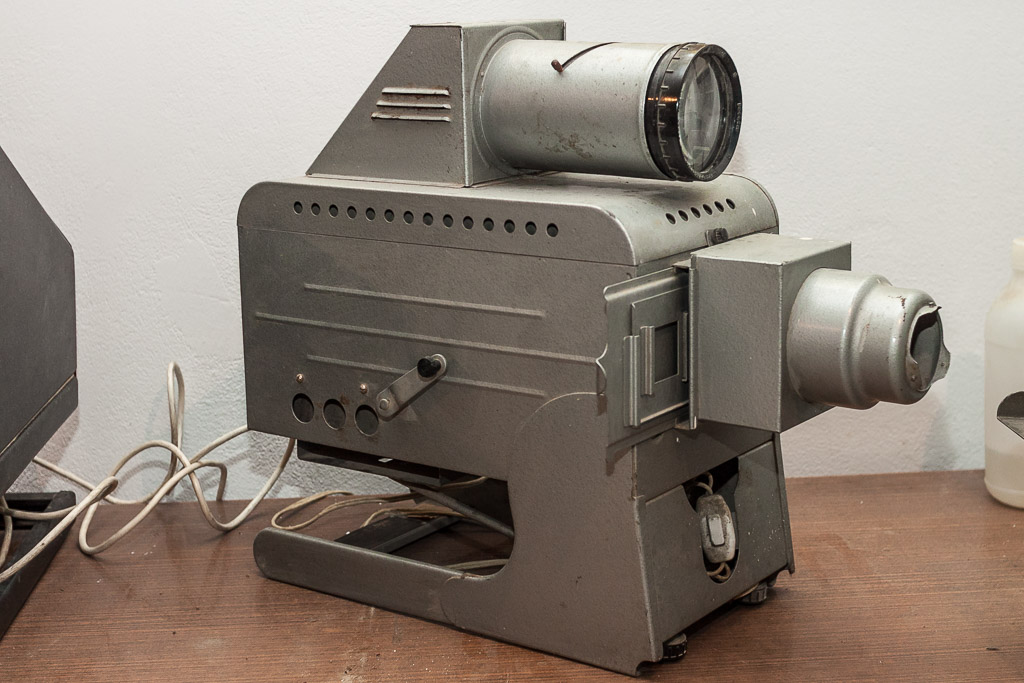 Παλαιού τύπου προβολέας που συνδυάζει την παρουσίαση σε οθόνη προβολής είτε κειμένων και εικόνων από αδιαφανείς πηγές είτε διαφανών εικόνων σε μορφή ταινίας.