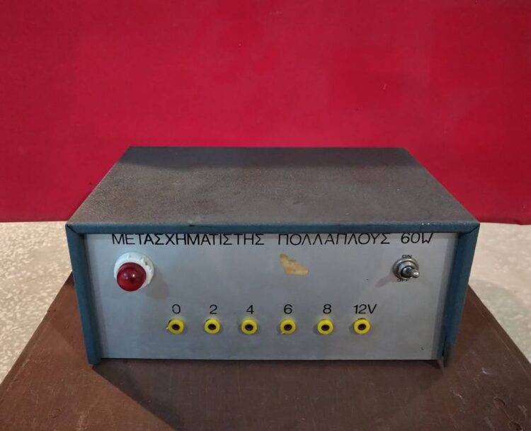 Περιγραφή: Πολλαπλός μετασχηματιστής ισχύος περίπου 60 – 100 W, με πρωτεύον 220 V και δευτερεύον που παρέχει εναλλασσόμενες τάσεις 0 – 2 – 4 – 6 – 8 – 12V.