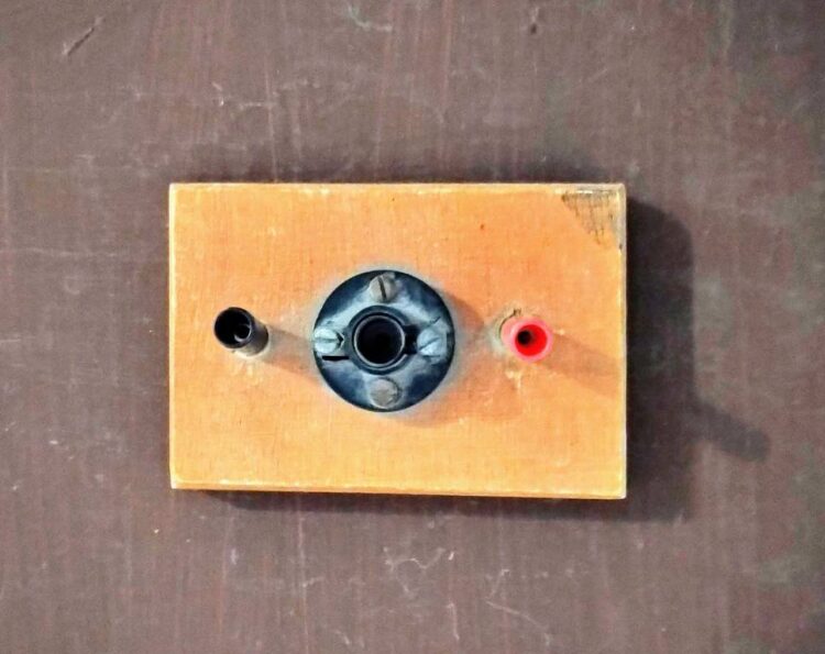 Λυχνιολαβή (ντουί), που χρησιμοποιείται για μικρά βιδωτά λαμπάκια διαφόρων τάσεων από 1.1 έως 12V. Είναι τοποθετημένη σε μονωτική βάση με ακροδέκτες παροχής. Μας την παραχώρησε το 5ο Δημοτικό Σχολείο Αγίου Δημητρίου.