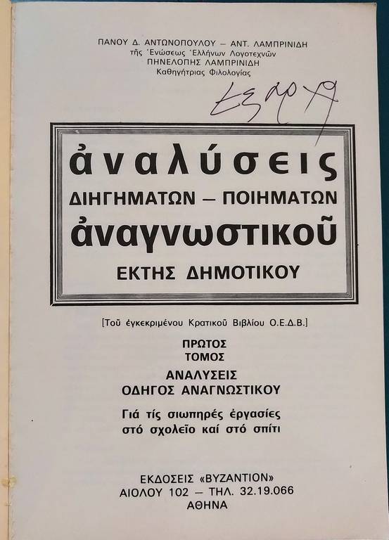 Κατηγορία: Δασκάλου Αναλύσεις Αναγνωστικού ΠΑΝΟΥ Δ. ΑΝΤΩΝΟΠΟΥΛΟΥ- ΑΝΤ. ΛΑΜΠΡΙΝΙΔΗ ΑΜΑΛΥΣΕΙΣ ΔΙΗΓΗΜΑΤΩΝ – ΠΟΙΗΜΑΤΩΝ ΕΚΤΗΣ ΔΗΜΟΤΙΚΟΥ ΕΚΔΟΣΕΙΣ “ΒΥΖΑΝΤΙΟΝ” ΑΘΗΝΑ Σχετικά προϊόντα Η γιορτή της μάνας Διαβάστε περισσότερα ΗΛΙΑ Ι. ΚΩΝΣΤΑΝΤΙΝΟΥ Η ΓΙΟΡΤΗ ΤΗΣ ΜΑΝΑΣ ΣΚΕΤΣ-ΠΟΙΗΜΑΤΑ ΑΘΗΝΑΙ 1956 View product Το βιβλίο του δασκάλου της Β΄ τάξης Διαβάστε περισσότερα ΚΑΤΙΝΑΣ ΓΕΜΕΛΗ - ΚΟΡΕΛΗ ΤΟ ΒΙΒΛΙΟ ΤΟΥ ΔΑΣΚΑΛΟΥ ΤΗΣ Β΄ ΤΑΞΗΣ ΕΚΔΟΣΕΙΣ "ΝΙΚΟΔΗΜΟΣ" View product Εφαρμογή του μονοτονικού συστήματος Διαβάστε περισσότερα ΟΔΗΓΙΕΣ για την εφαρμογή του μονοτονικού συστήματος στα σχολεία της γενικής εκπαίδευσης ΟΕΔΒ 1982 View product