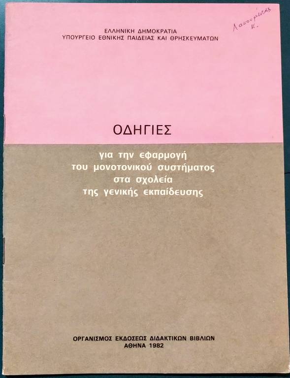Κατηγορία: Δασκάλου Εφαρμογή του μονοτονικού συστήματος ΟΔΗΓΙΕΣ για την εφαρμογή του μονοτονικού συστήματος στα σχολεία της γενικής εκπαίδευσης ΟΕΔΒ 1982 Σχετικά προϊόντα Η προπαρασκευή του δασκάλου Διαβάστε περισσότερα ΑΝΑΣΤ. Γ. ΤΑΚΑ Η ΠΡΟΠΑΡΑΣΚΕΥΗ ΤΟΥ ΔΑΣΚΑΛΟΥ ΣΤΟ ΔΙΔΑΚΤΙΚΟ ΕΡΓΟ ΑΘΗΝΑΙ 1963 View product Προβλήματα Σχολείου-Οικογένειας Διαβάστε περισσότερα ΔΗΜΗΤΡΙΟΥ ΜΠΑΡΚΟΥΛΑ ΠΡΟΒΛΗΜΑΤΑ ΣΧΟΛΕΙΟΥ-ΟΙΚΟΓΕΝΕΙΑΣ ΓΥΘΕΙΟΝ 1953 View product Αναλυτικόν Πρόγραμμα Γυμνασίου Διαβάστε περισσότερα ΥΠΟΥΡΓΕΙΟΝ ΠΑΙΔΕΙΑΣ ΚΑΙ ΘΡΗΣΚΕΥΜΑΤΩΝ ΑΝΑΛΥΤΙΚΟΝ ΠΡΟΓΡΑΜΜΑ ΤΩΝ ΜΑΘΗΜΑΤΩΝ ΤΟΥ ΓΥΜΝΑΣΙΟΥ ΑΘΗΝΑΙ 1931 View product