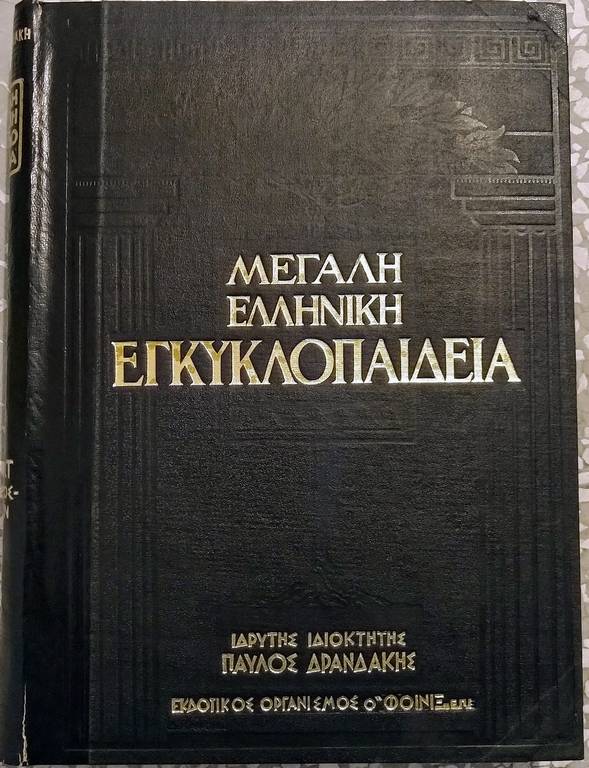 Η Μεγάλη Ελληνική Εγκυκλοπαίδεια είναι γενική εγκυκλοπαίδεια που εκδόθηκε αρχικά μεταξύ του 1926 και 1934. Η εγκυκλοπαίδεια ιδρύθηκε το 1926 από τον Παύλο Δρανδάκη (1896–1945) κατά το πρότυπο της Εγκυκλοπαίδειας Μπριτάνικα. Ο Παύλος Δρανδάκης κράτησε ορισμένα δικαιώματα της εγκυκλοπαίδειας τα οποία αργότερα διεκδίκησε σε δίκη. Αφού κέρδισε την δίκη, οι απόγονοί του εξέδωσαν μία δεύτερη έκδοση της εγκυκλοπαίδειας το 1956 υπό τον λογότυπο “Φοίνιξ”. Μας τη δώρισε ο φίλος Μανίκας Γιώργος.
